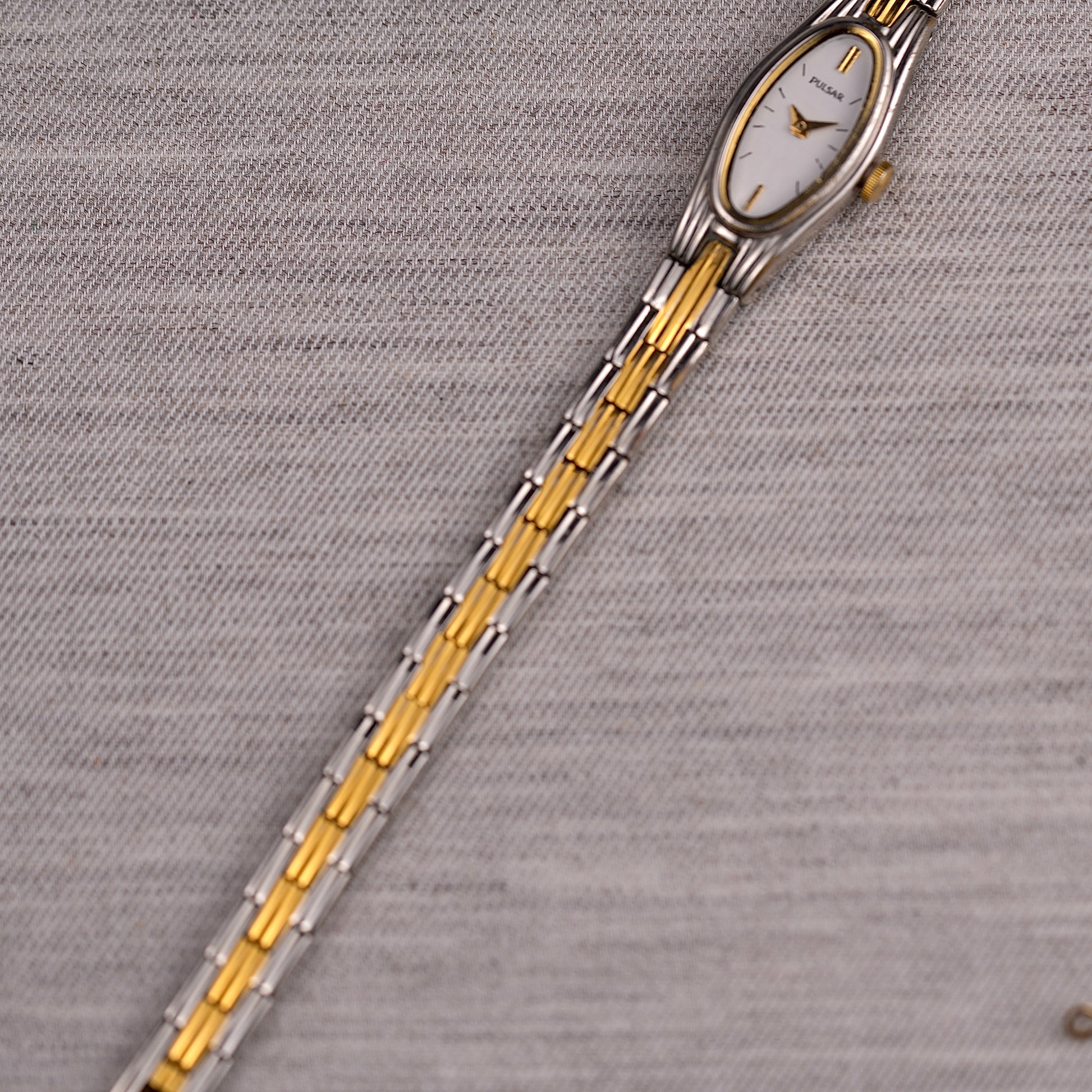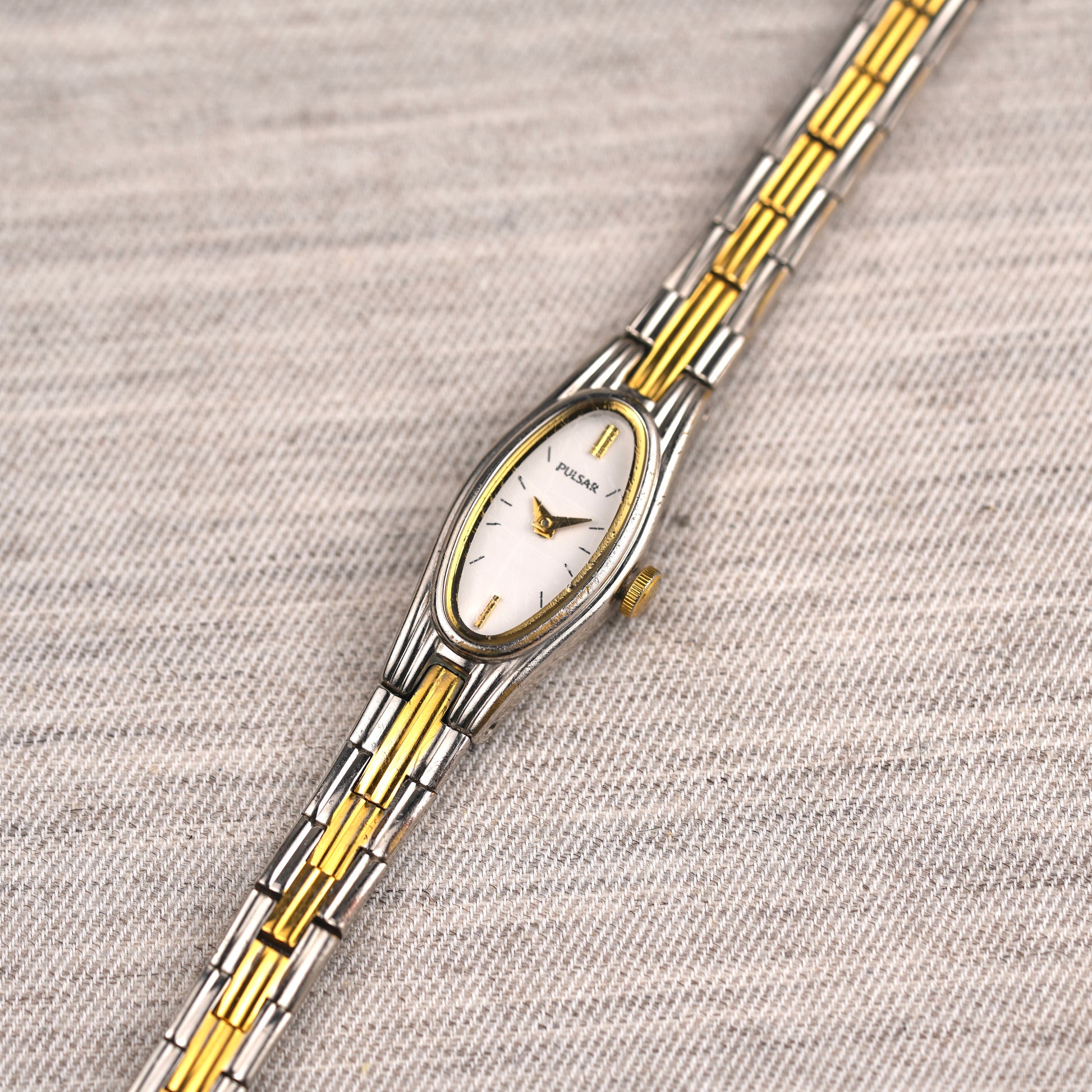 Good condition. Crystal has been replaced with new old stock Pulsar crystal. Small scratches to watch case back. All original links on bracelet.
